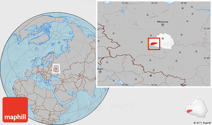 Maphill is a collection of map images. This image combines a gray map with the globe centered on Arsenyevskiy. Use the buttons under the image to switch to different map types.