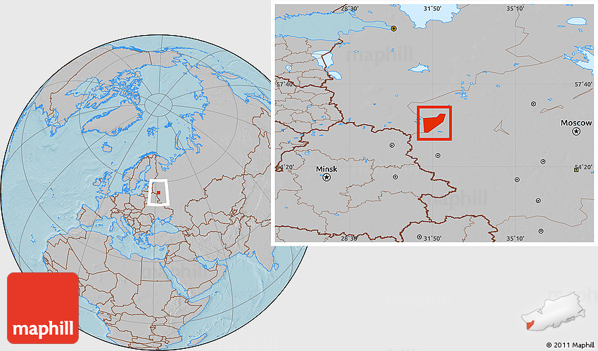 Maphill is a collection of map images. This image combines a gray map with the globe centered on Zapadnodvinskiy. Use the buttons under the image to switch to different map types.