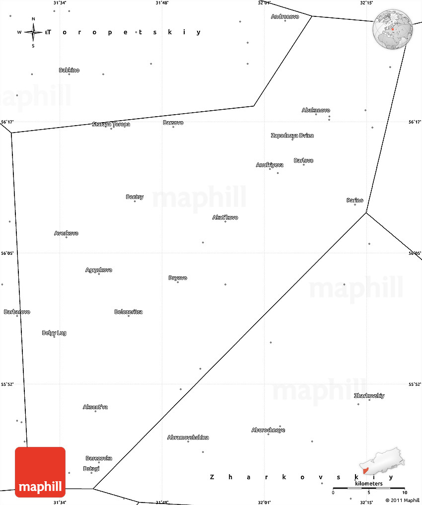 This blank simple map of Zapadnodvinskiy is available in a JPEG image format. You can embed, print or download the map just like any other image. Enrich your website with hiqh quality map graphics. Use the Free map button above the image.
