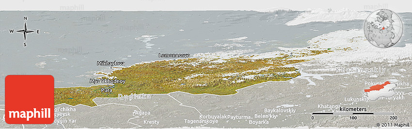This satellite panoramic map of Diksonskiy is available in a JPEG image format. You can embed, print or download the map just like any other image. Enrich your website with hiqh quality map graphics. Use the Free map button above the image.