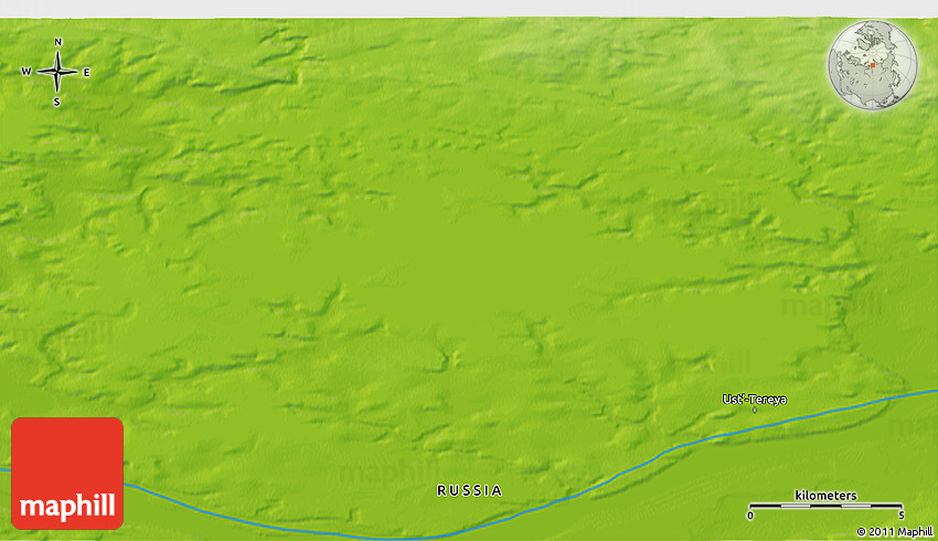 Physical map illustrates the mountains, lowlands, oceans, lakes and rivers and other physical landscape features of Ust'-Tereya. Differences in land elevations relative to the sea level are represented by color.