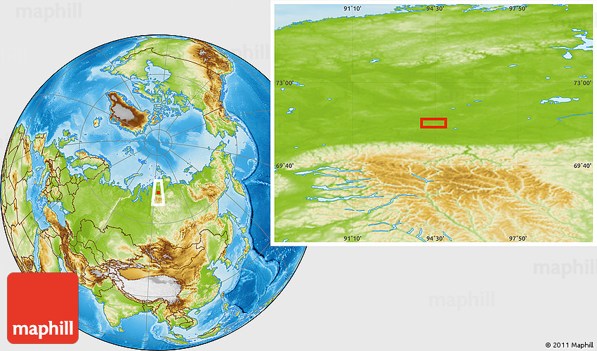 The physical location map represents one of many map types and styles available. Look at Letov'ye, Khatangskiy, Taymyr Autonomous Okrug, Eastern Siberia, Russia from different perspectives.
