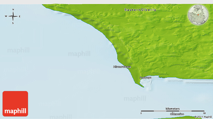 The 3D physical map represents one of many map types and styles available. Look at Sopkarga, Ust-Yeniseyskiy, Taymyr Autonomous Okrug, Eastern Siberia, Russia from different perspectives.