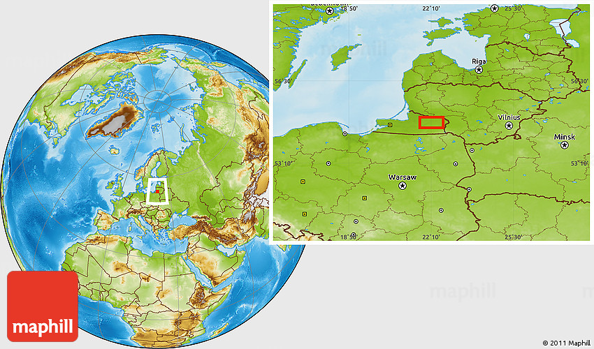 Maphill is a collection of map images. This image combines a physical map with the globe centered on Nesterov. Use the buttons under the image to switch to different map types.