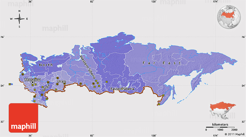 Use the buttons for Facebook, Twitter or Google+ to share a link to this Russia map. Maphill is the largest map gallery on the web. But the number of maps is certainly not the only reason to visit Maphill.