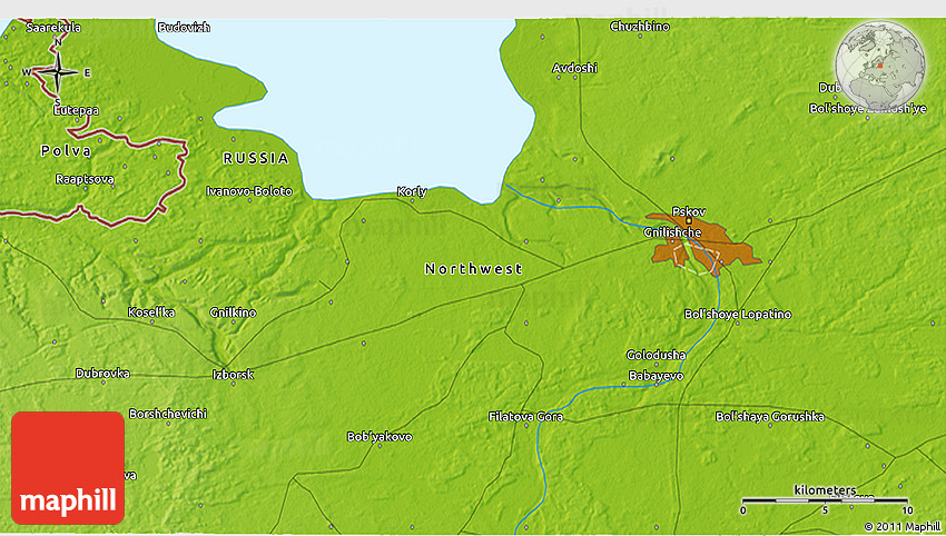 The 3D physical map represents one of many map types and styles available. Look at Maloye Lopatino, Pskovskiy, Pskov Oblast, Northwest, Russia from different perspectives.
