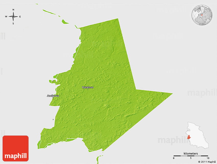 Physical map illustrates the mountains, lowlands, oceans, lakes and rivers and other physical landscape features of Pytalovskiy. Differences in land elevations relative to the sea level are represented by color.