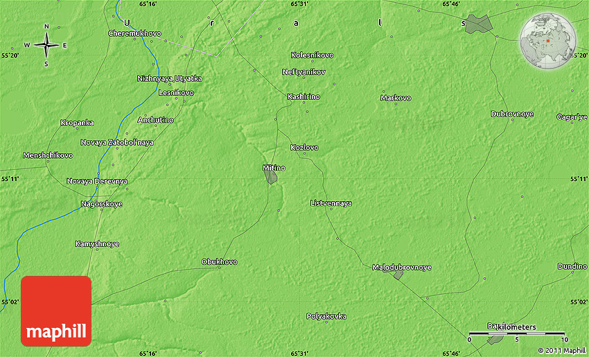 The flat political map represents one of many map types available. Look at Yaroslavskoye, Pritobolnyi, Kurgan Oblast, Urals, Russia from different perspectives.