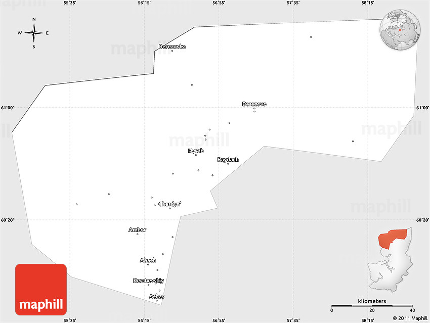 Embed the above silver style simple map of Cherdynskiy into your website. Enrich your blog with quality map graphics. Make the web a more beautiful place.
