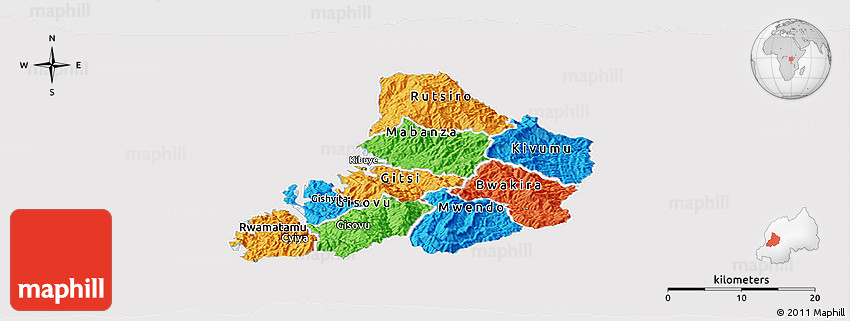 The panoramic political map represents one of many map types and styles available. Look at Kibuye from different perspectives.