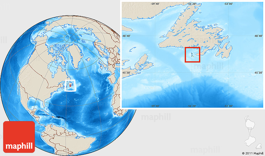 Each map type offers different information and each map style is designed for a different purpose. Read about the styles and map projection used in the above map (Savanna Style Location Map of Saint Pierre and Miquelon, shaded relief outside).