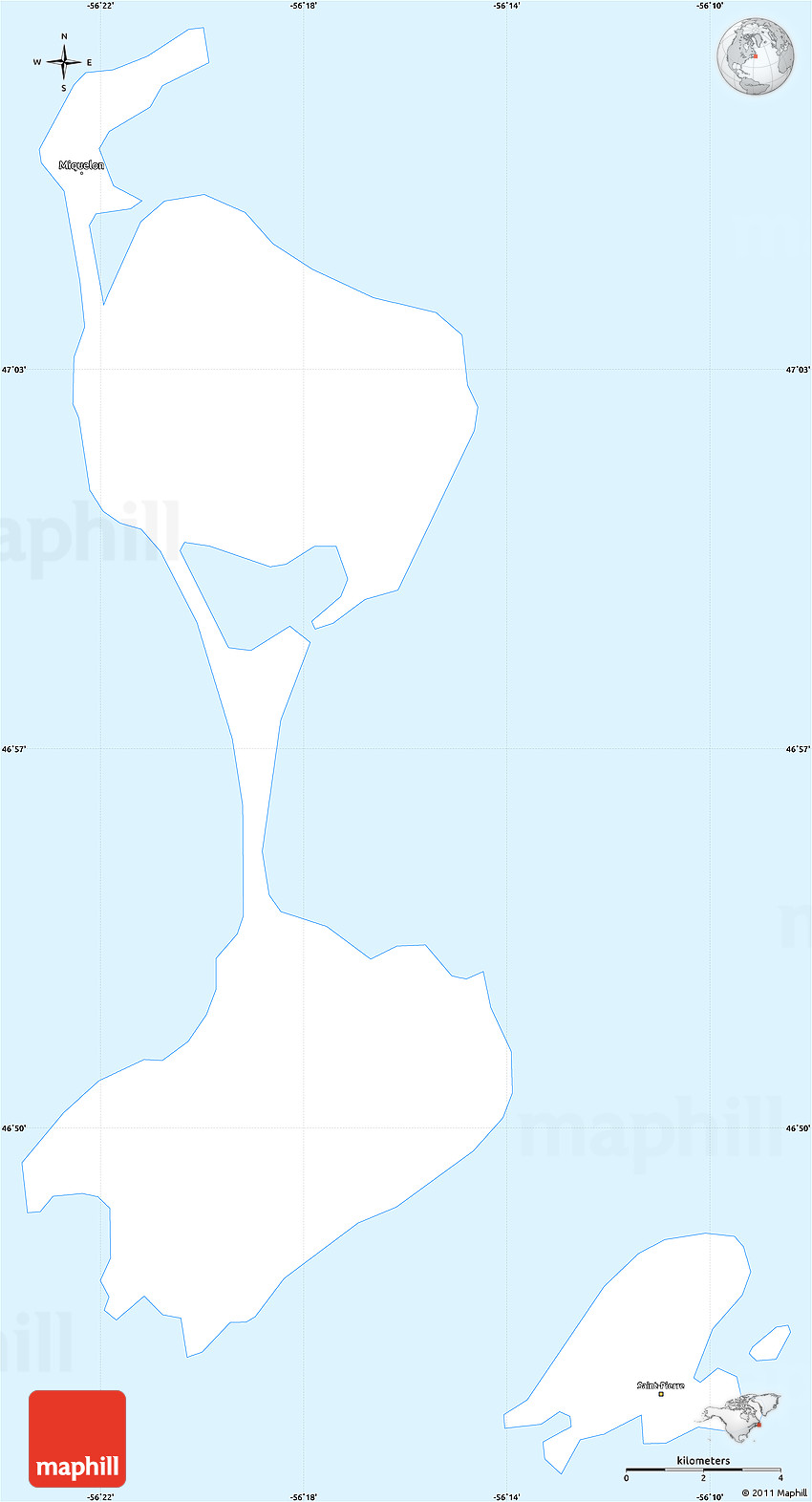 Maphill is a collection of map graphics. This simple outline map of Saint Pierre and Miquelon is one of these images. Use the buttons under the image to switch to more comprehensive and detailed map types.