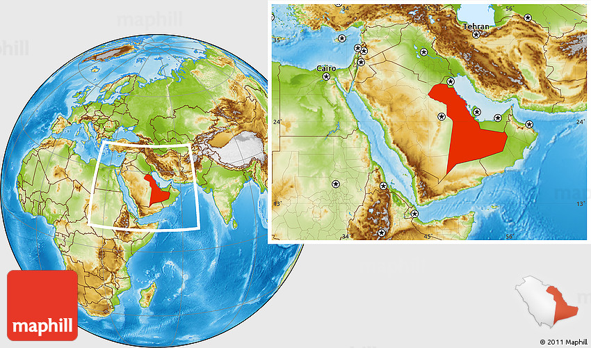 Maphill is a collection of map images. This image combines a physical map with the globe centered on Eastern Province. Use the buttons under the image to switch to different map types.