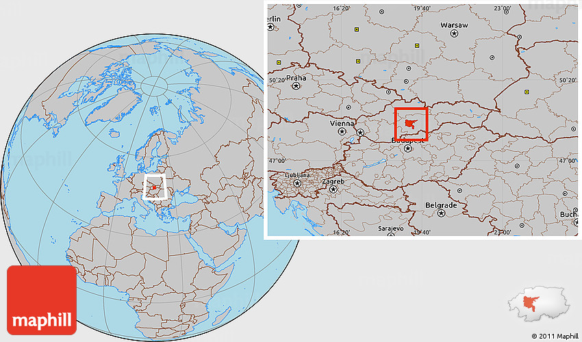 Maphill is a collection of map images. This image combines a gray map with the globe centered on Zvolen. Use the buttons under the image to switch to different map types.