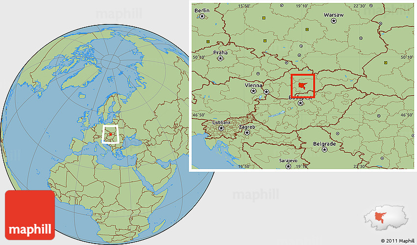 Maphill is a collection of map images. This image combines a savanna style map with the globe centered on Zvolen. Use the buttons under the image to switch to different map types.