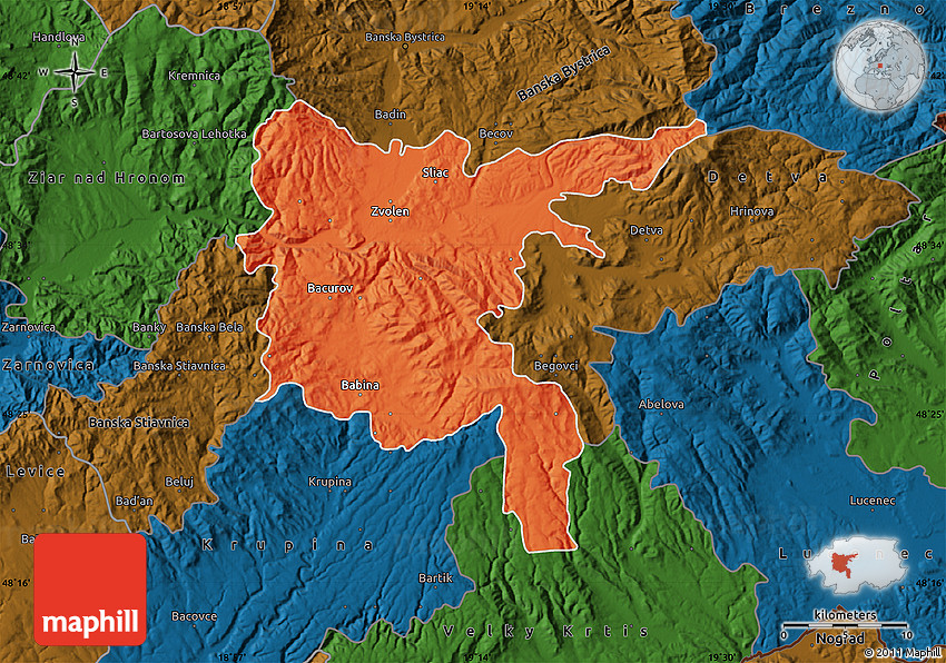 Each map style has its advantages. No map type is the best. The best is that Maphill lets you look at Zvolen from many different perspectives.