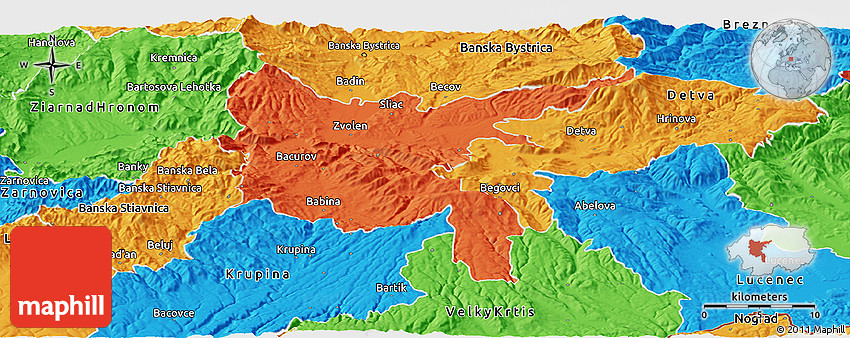 The panoramic political map represents one of several map types and styles available. Look at Zvolen, Banska Bystrica, Slovakia from different perspectives.