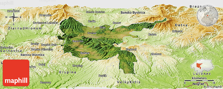 Each map style has its advantages. No map type is the best. The best is that Maphill lets you look at Zvolen from many different perspectives.