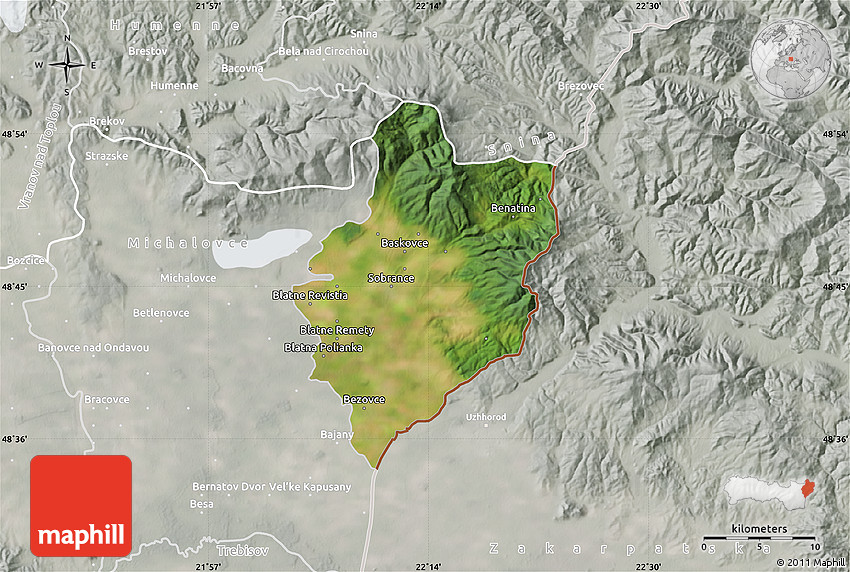 Maphill is a collection of map images. This satellite map of Sobrance is one of them. Click on the Detailed button under the image to switch to a more detailed map.