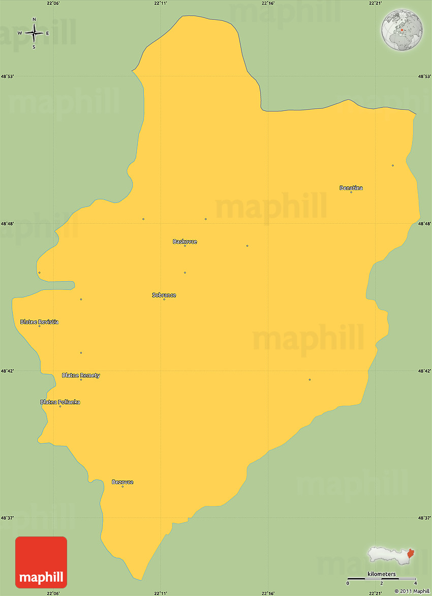 The simple savanna style outline map represents one of several map types and styles available. Look at Sobrance, Kosice, Slovakia from different perspectives.