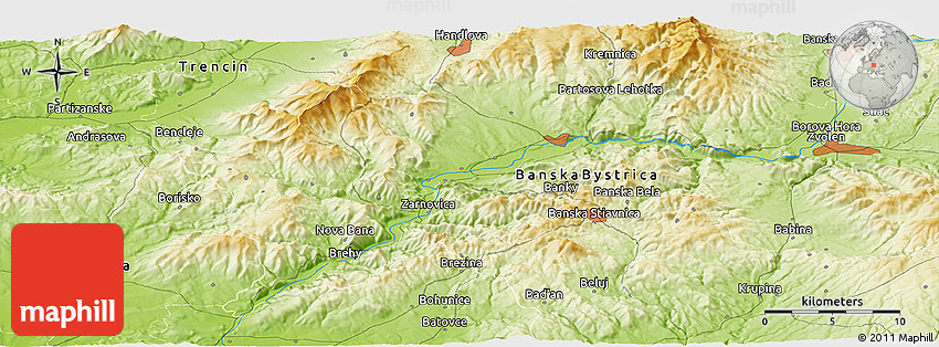 Sure, this physical panoramic map is nice. But there is good chance you will like other map styles even more. Select another style in the above table. See Dolné Devičany and Nitra from a different view.