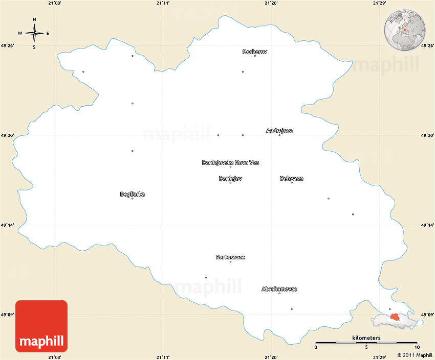 Maphill is a collection of map graphics. This simple outline map of Bardejov is one of these images. Use the buttons under the image to switch to more comprehensive and detailed map types.