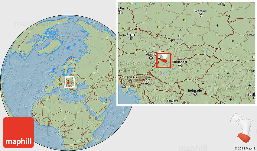Each map type offers different information and each map style is designed for a different purpose. Read about the styles and map projection used in the above map (Savanna Style Location Map of Dunajska Streda, highlighted parent region, within the entire country, hill shading).