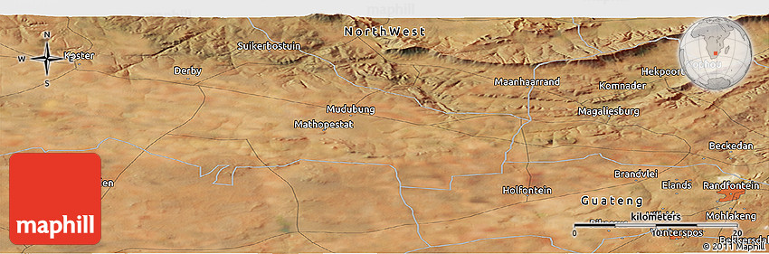 Each map type offers different information and each map style is designed for a different purpose. Read about the styles and map projection used in the above map (Satellite Panoramic Map of Randfontein South).