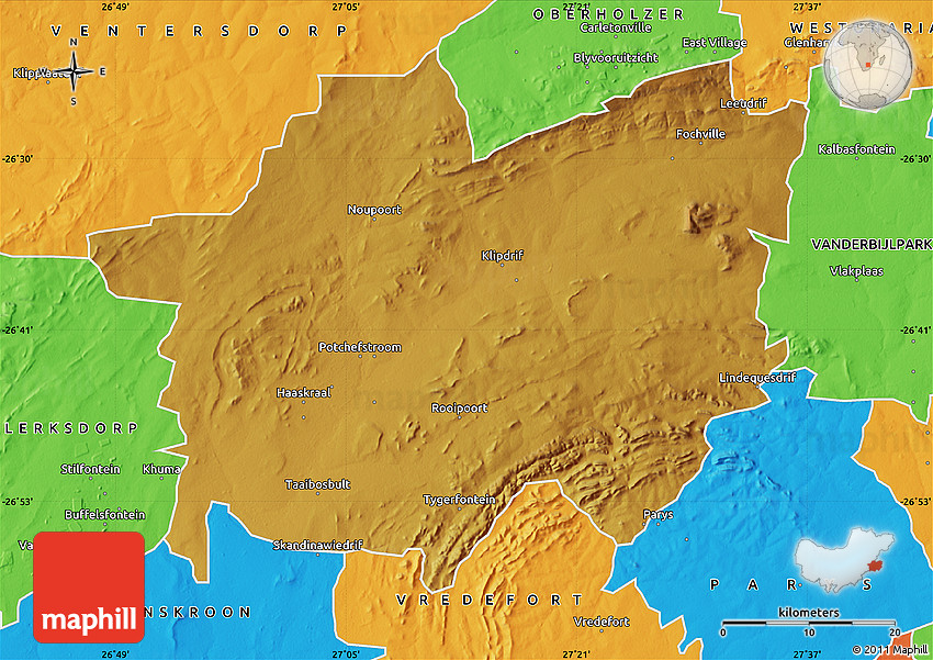 Maphill is a collection of map images. This physical map of POTCHEFSTROOM is one of them. Click on the Detailed button under the image to switch to a more detailed map.