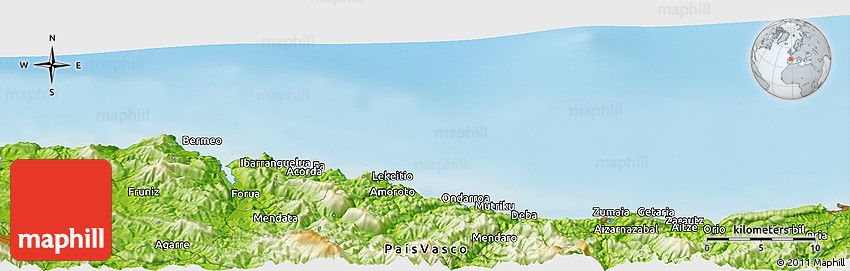 The panoramic physical map represents one of many map types and styles available. Look at Zugastieta, Viscaya, País Vasco, Spain from different perspectives.