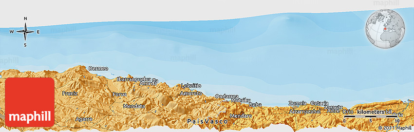 The panoramic political map represents one of many map types and styles available. Look at Zugastieta, Viscaya, País Vasco, Spain from different perspectives.