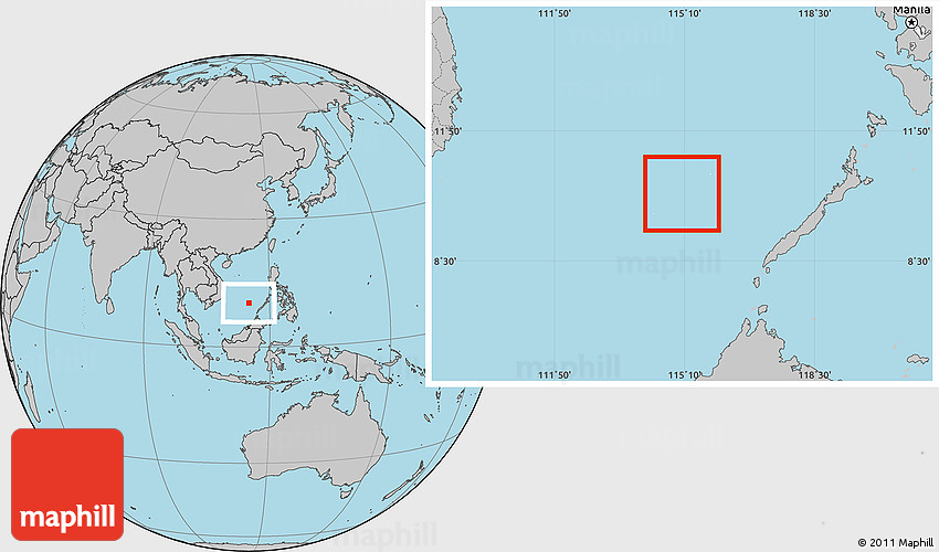 Maphill is a collection of map images. This image combines a blank map with the globe centered on Spratly Islands. Use the buttons under the image to switch to different map types.