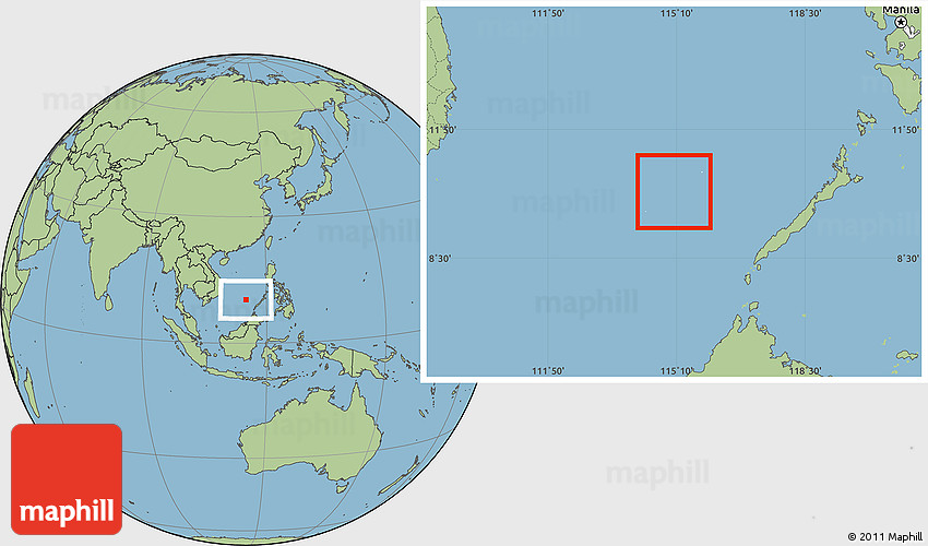 Maphill is a collection of map images. This image combines a blank map with the globe centered on Spratly Islands. Use the buttons under the image to switch to different map types.