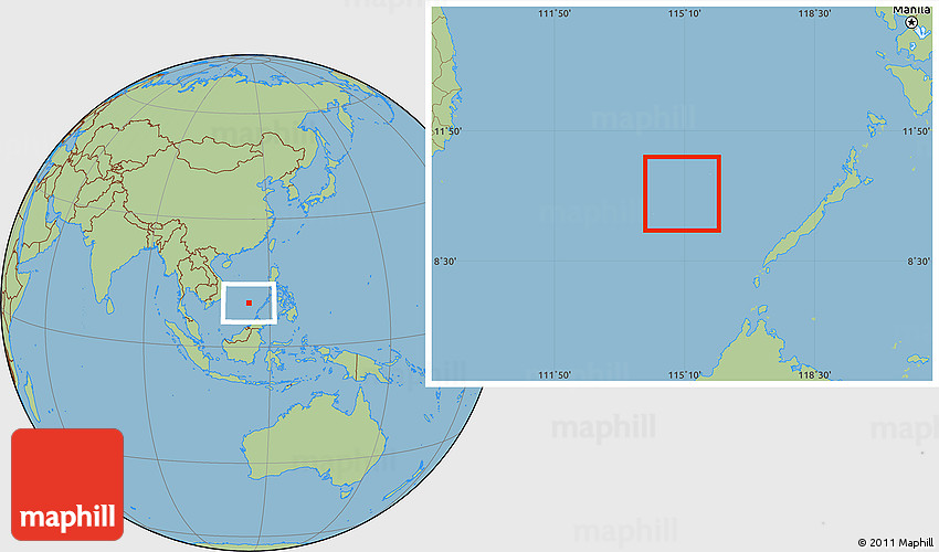 Maphill is a collection of map images. This image combines a gray map with the globe centered on Spratly Islands. Use the buttons under the image to switch to different map types.