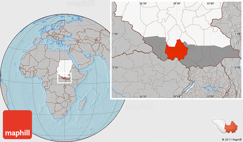 Maphill is a collection of map images. This image combines a gray map with the globe centered on Amadi. Use the buttons under the image to switch to different map types.