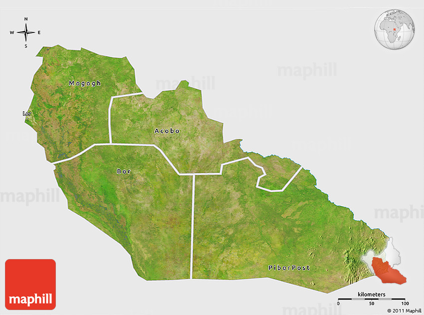 The 3D satellite map represents one of several map types and styles available. Look at Junglei, Upper Nile, Sudan from different perspectives.
