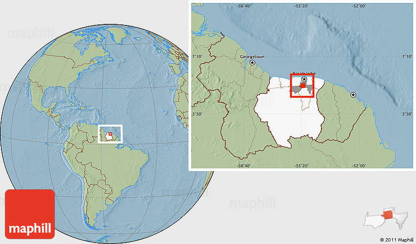 Use the buttons for Facebook, Twitter or Google+ to share this Zuid, Para, Suriname map. Maphill is the largest web map gallery. However, the number of maps is certainly not the only reason to visit Maphill.