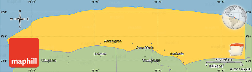 The simple savanna style outline map represents one of several map types and styles available. Look at Wayambo Weg, Saramacca, Suriname from different perspectives.