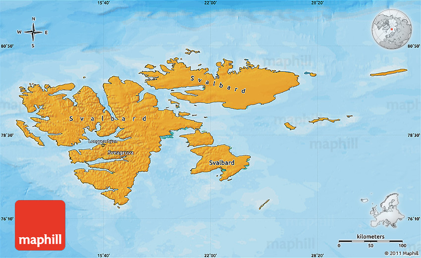 The panoramic political map represents one of many map types and styles available. Look at Svalbard from different perspectives.