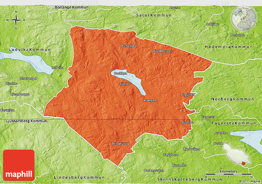 The 3D political map represents one of several map types and styles available. Look at Smedjebacken Kommun, Dalarnes Län, Sweden from different perspectives.