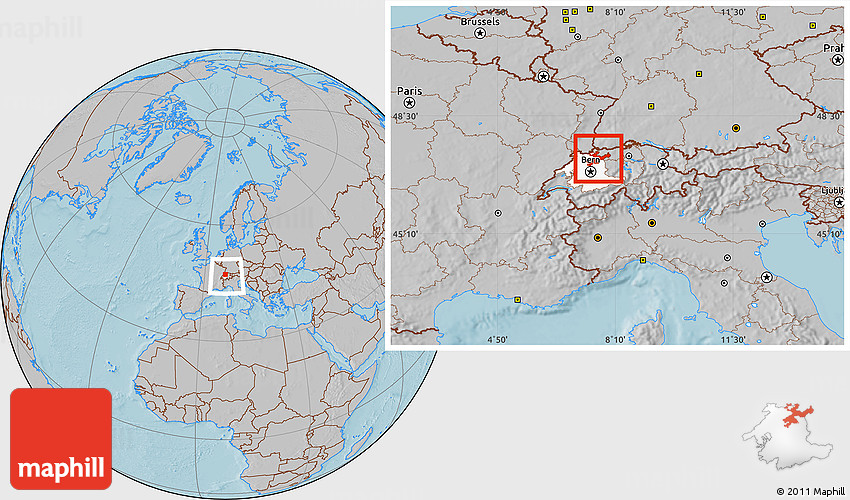 Maphill is a collection of map images. This image combines a gray map with the globe centered on Solothurn. Use the buttons under the image to switch to different map types.