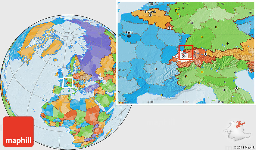 Maphill is a collection of map images. This image combines a political map with the globe centered on Solothurn. Use the buttons under the image to switch to different map types.