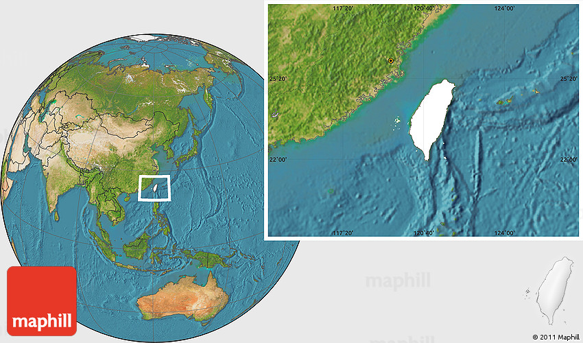 Each map type offers different information and each map style is designed for a different purpose. Read about the styles and map projection used in the above map (Blank Location Map of Taiwan, satellite outside).