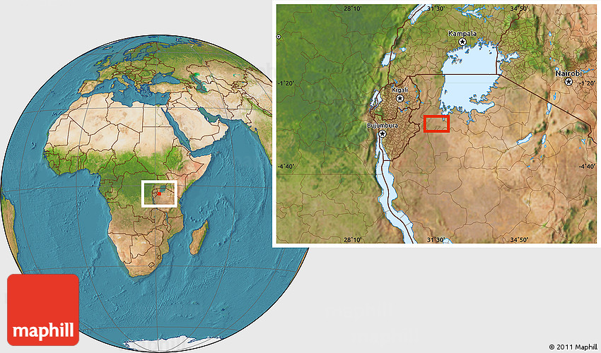 Maphill is a collection of map images. This image combines a satellite map with the globe centered on Migege. Use the buttons under the image to switch to different map types.