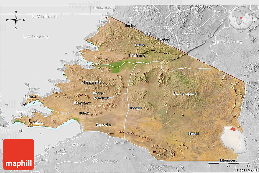 Satellite map shows the Earth's surface as it really looks like. The above map is based on satellite images taken on July 2004. This satellite map of Mara is meant for illustration purposes only. For more detailed maps based on newer satellite and aerial images switch to a detailed map view.