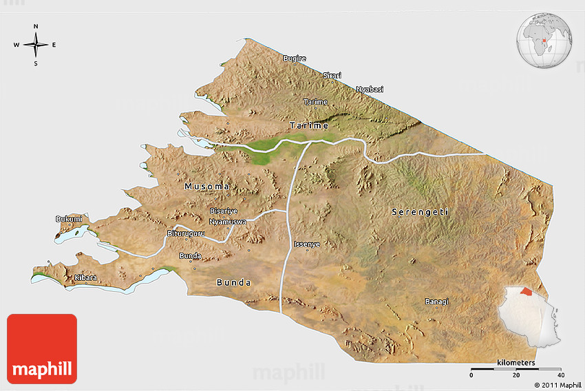 Satellite map shows the Earth's surface as it really looks like. The above map is based on satellite images taken on July 2004. This satellite map of Mara is meant for illustration purposes only. For more detailed maps based on newer satellite and aerial images switch to a detailed map view.