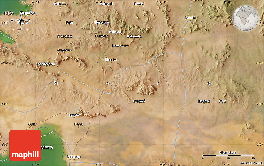 Maphill is a collection of map images. This satellite map of Iramba is one of them. Click on the Detailed button under the image to switch to a more detailed map.