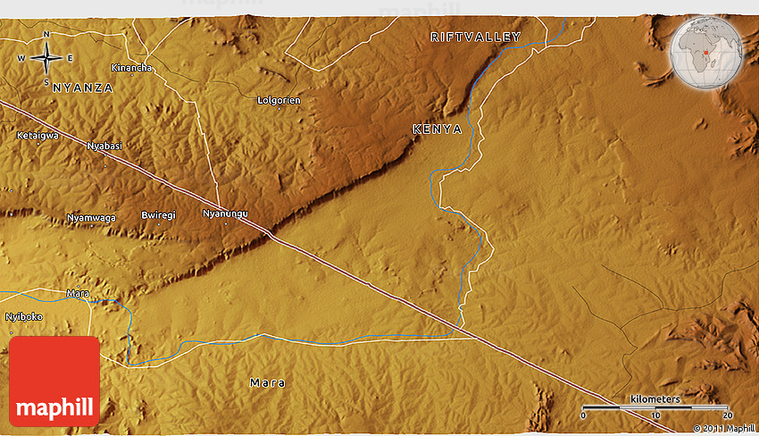 Sure, this physical 3D map is nice. But there is good chance you will like other map styles even more. Select another style in the above table. See Nyamwaga and Mara from a different view.