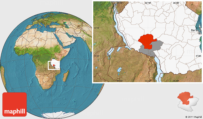 Maphill is a collection of map images. This image combines a satellite map with the globe centered on Chunya. Use the buttons under the image to switch to different map types.