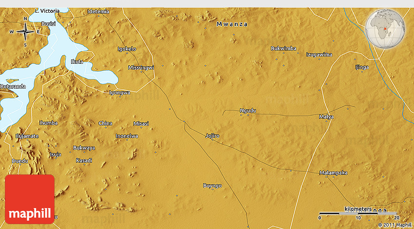 The 3D physical map represents one of many map types and styles available. Look at Mwalukuliko, Maswa, Shinyanga, Tanzania from different perspectives.